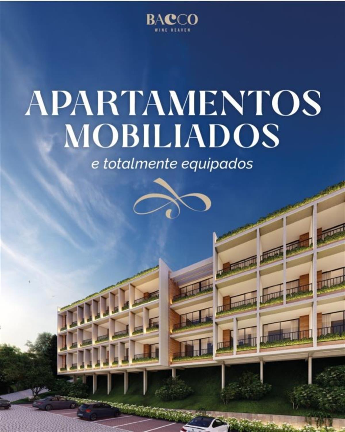 BACCO é um empreendimento inédito, o primeiro Resort Eno Experiences do Brasil.Um Condomínio fechado de Apartamentos, Studios, Lofts e Duplexes com ampla infraestrutura de lazer que inclui Restaurante,Wine Bar, Wine Garden, Sky Bar e uma vinícola própria para apreciar o melhor da vida em todos os sentidos.BACCO RESORT WINE HEAVEN Vale dos Vinhedos-Possibilidade de uso próprio ou deixar rentabilizando na operação do Resort-Estudo de Viabilidade Caio Calfart, registrado e aprovado pela CVM Comissão Valores Mobiliários1 Resort Eno Experiences do BrasilTHE CAVE - WINE EXPERIENCES-Você vai vivenciar a experiência completa de ter uma vinícola e produzir seu próprio vinho ou espumante, além de cursos e workshops! INDOOR EXPERIENCES-Hall Imponente Com Pé Direito Triplo-Restaurante