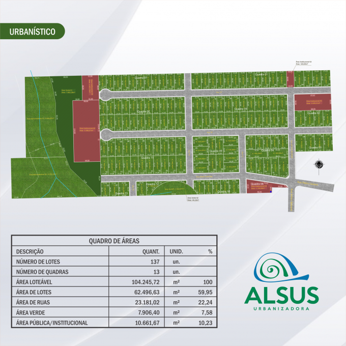 Além do loteamento oferecer total infraestrutura, com redes de água, pavimentação e iluminação, está sendo construída a primeira Estação de Tratamento de Esgoto do município, para atendimento exclusivo dos lotes existentes no empreendimento.